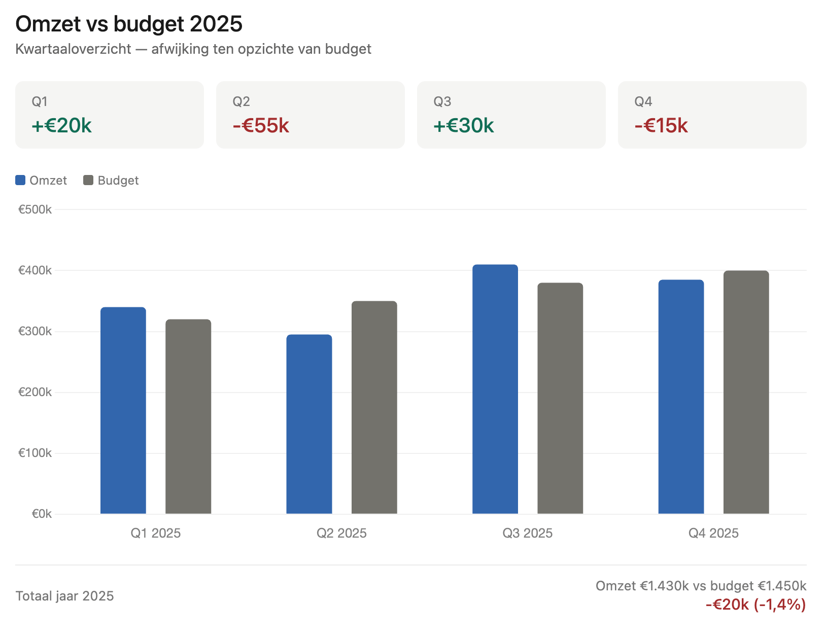 Hoe je in één zin een professionele grafiek maakt van je cijfers, compleet met analyse.