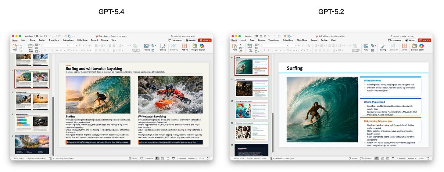 Een vergelijking van de output van GPT-5.4 met zijn voorganger. Bron afbeelding: OpenAI